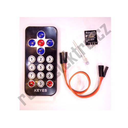 Sestava dálkového infra ovládání obsahuje vysílač, přijímač, propojovací vodiče k zapojení přijímače a zkušební LED diodu. Vysílač má 17 kláves a je napájen knoflíkovou baterií CR2032 která je součástí dodávky. Přijímač je napájen stejnosměrným napětím 5V. Na DPS přijímače je LED signalizující příjem signálu z ovladače.