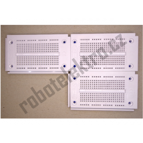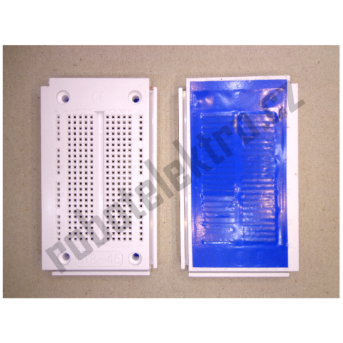 Ze zadní strany je izolační fólie – pole je vhodné přišroubovat na nevodivou destičku. Pomocí plastových západek na bocích lze snadno spojovat více polí do velkých celků. Ideální pro zkoušení jednoduchých obvodů.
