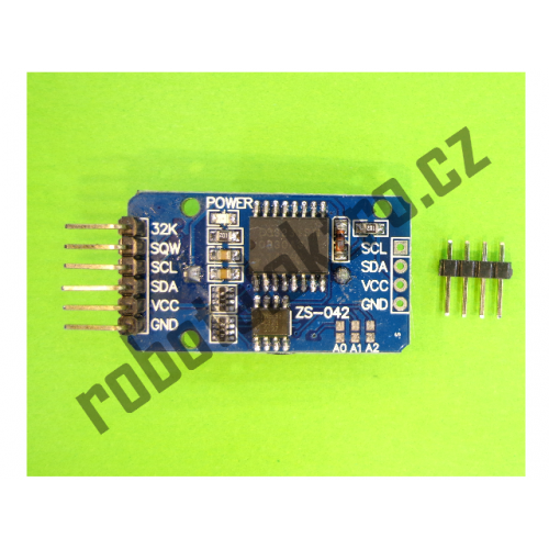 Obvod DS3231 – měření reálného času (RTC) s integrovanou teplotní kompenzací a výstupem na I2C. Modul má k dispozici vlastní bateriové napájení (CR2032) baterii CR2032 je potřeba dokoupit zvlášť, takže není závislý na hlavním napájení ze zařízení ve kterém je používán.