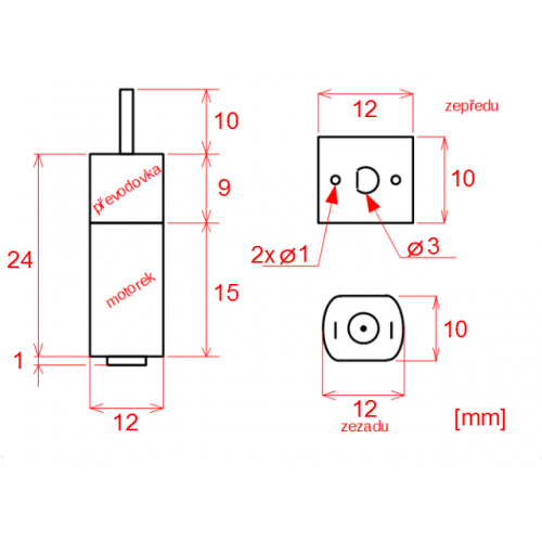 | 5V | naprázdno, volně se otáčející | 15mA | 80 ot / minutu |