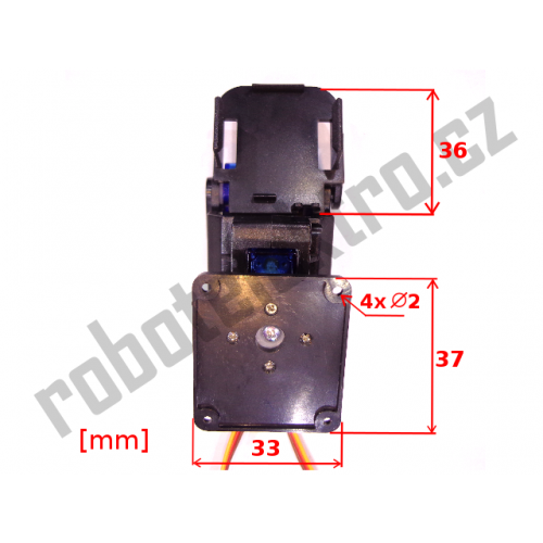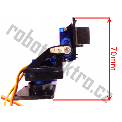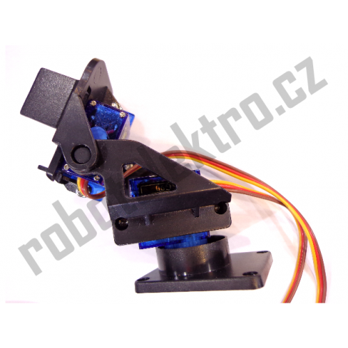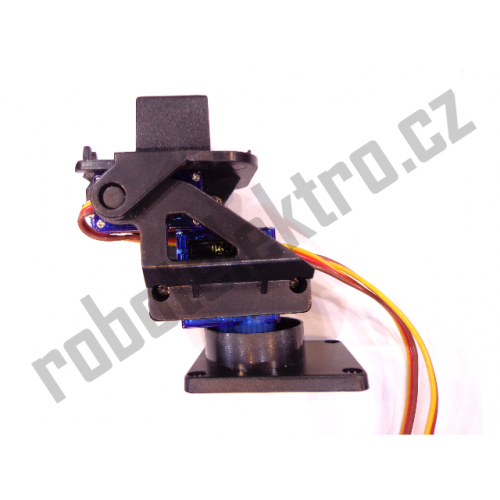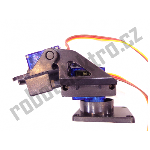 Plastová konstrukce s dvěma klouby, sloužící k otáčení kamery nebo senzoru ve dvou osách – horizontálně i vertikálně. K pohonu slouží dvě dvě modelářská mikroserva typ SG90. K uchycení držáku jsou v podstavě 4 otvory. Držák unese zátěž cca 200gramů upevněnou na koncovou plochu.