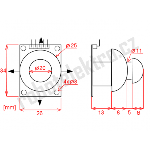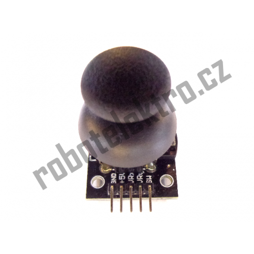 Přesný Joystick s analogovým výstupem a středovým tlačítkem. Výstupem jsou dvě hodnoty odporu měnící se podle polohy ovládací páčky. Hodí se k přesnému řízení robotů a modelů, vhodné i k vývojovým deskám Arduino. Mechanická konstrukce se skládá z kvalitní kovové konstrukce na plošném spoji. Ovládací páčka je plastová s pogumovaným povrchem.